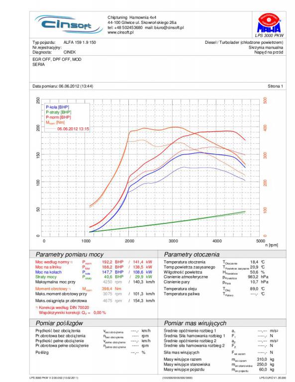 Okazało się, że moja Bella miała już wgraną nieudolnie mapę (!!!), na szczęście Marcin wszystko poprawił i wycisnął 174 kM oraz 357 Nm.