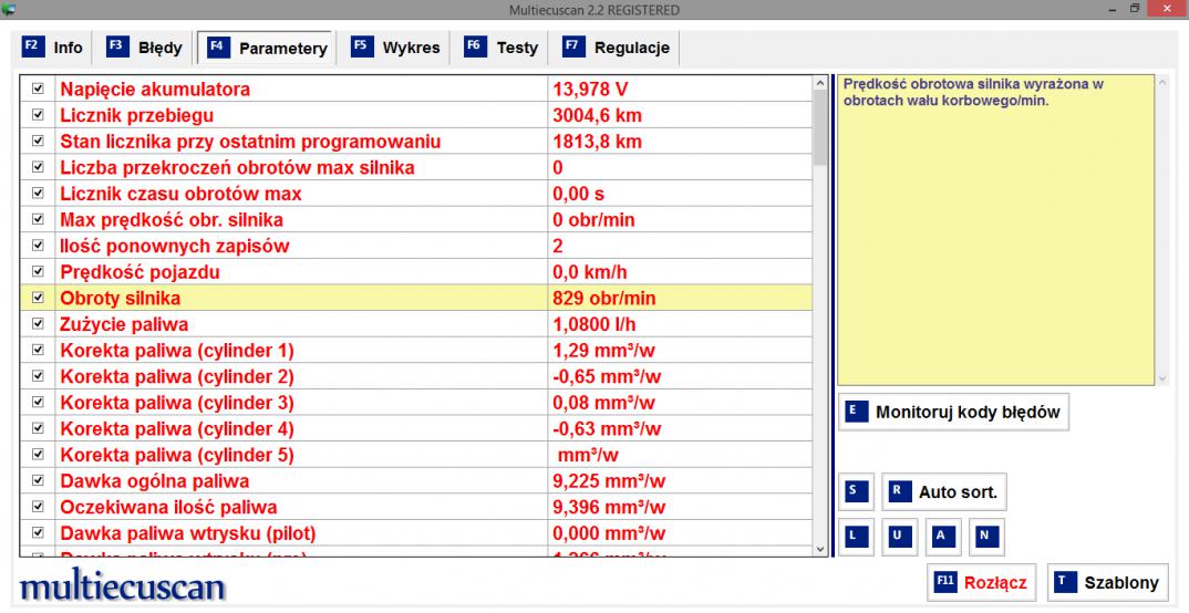 Niepotrzebnie zaznaczyłeś tyle parametrów. Wystarczyło zaznaczyć korekty, obroty, temperaturę silnika, zużycie paliwa w l/h i ewentualnie dawkę ogólną paliwa. Najwyższą wartość korekcji zgłasza wtrysk na 1 cylindrze +1,29. Oznacza to, że wtryskiwacz jest lekko przytarty, ewentualnie masz słabszą kompresję na I cylindrze. Masz dość wysokie zużycie paliwa w l/h. Przy jakiej temperaturze silnika robiony odczyt? No i licznik miałeś chyba korygowany. Dwa razy ;)