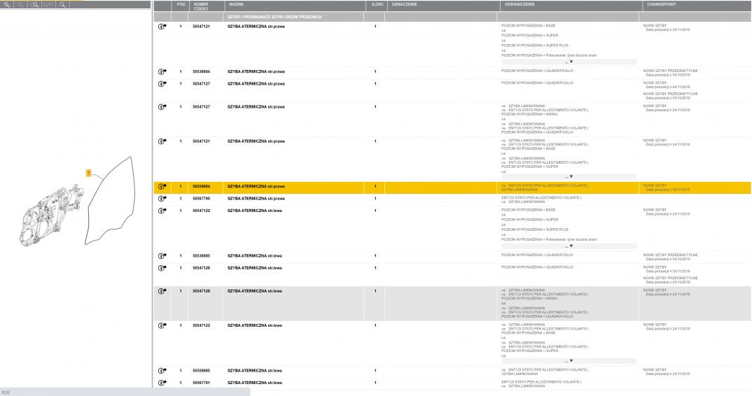 Mogę Ci pomóc, jednak najlepiej by było jakbyś podesłał jakiś VIN auta które na 100% ma te szyby w pakiecie, gdyż w katalogu jest kilka szyb, a ich opis jest mało precyzyjny.