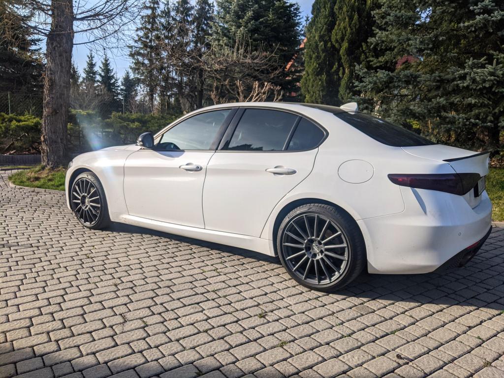 Nie chce mi się przewijać tematu - gdyby komuś było przydatne, zdjęcie czerwonej (Rosso Alfa) Giulii na felgach Veloce z szerszym tyłem: