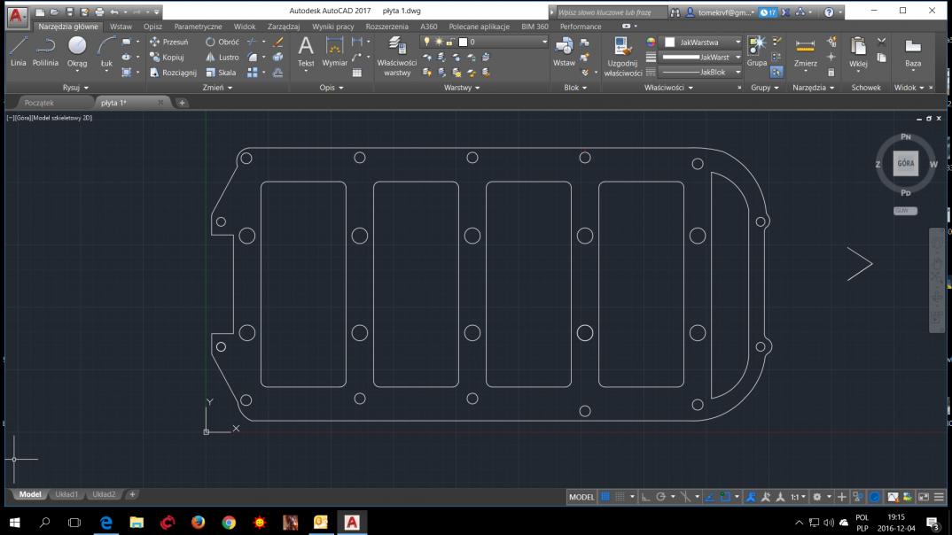 Płyta narysowana. Teraz model z papieru i zlecam wycięcie.