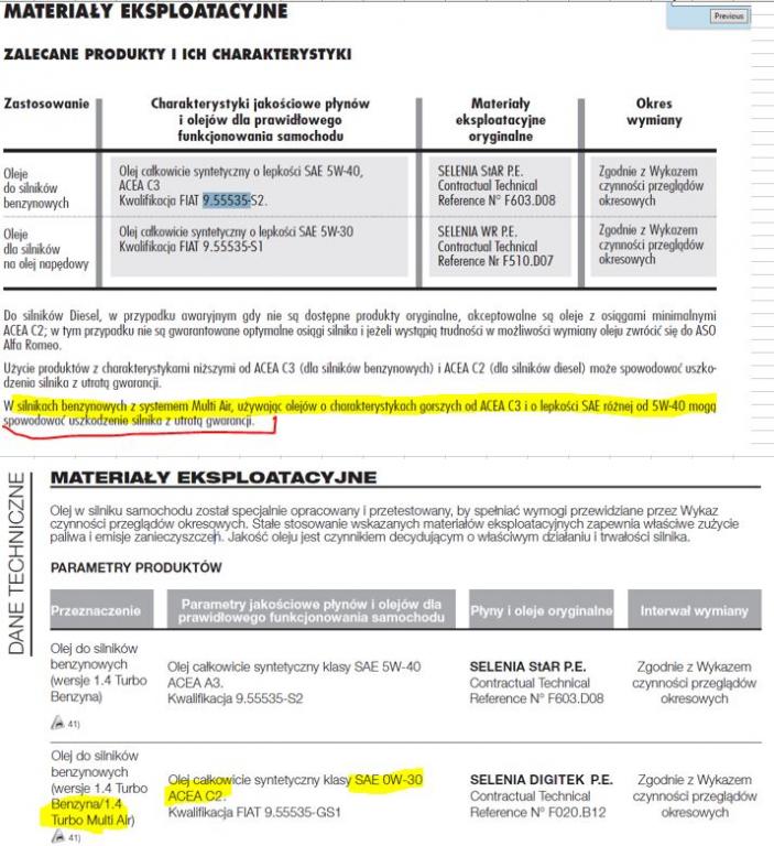 instrukcje do auta podają sprzeczne informacje. W Giulieccie żony MultiAir 1.4 170KM z 2014r, był wlewany do tej pory olej 5W-40, ale nowa instrukcja mówi o 0W-30.