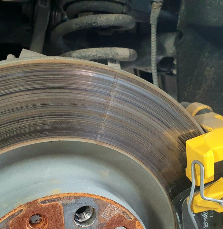 Auto musiało stać przez jakiś czas z zaciągniętym ręcznym, może jeszcze po umyciu. To jest ślad po tym, po kilku hamowaniach zniknie.