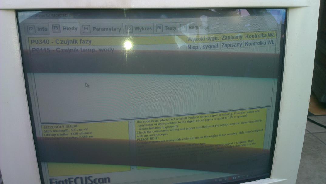 Lapek się nie podnosi. Biorę stacjonarnego i idę zbadać moją niunię. Jakiś błąd musiało zapisać w ECU.