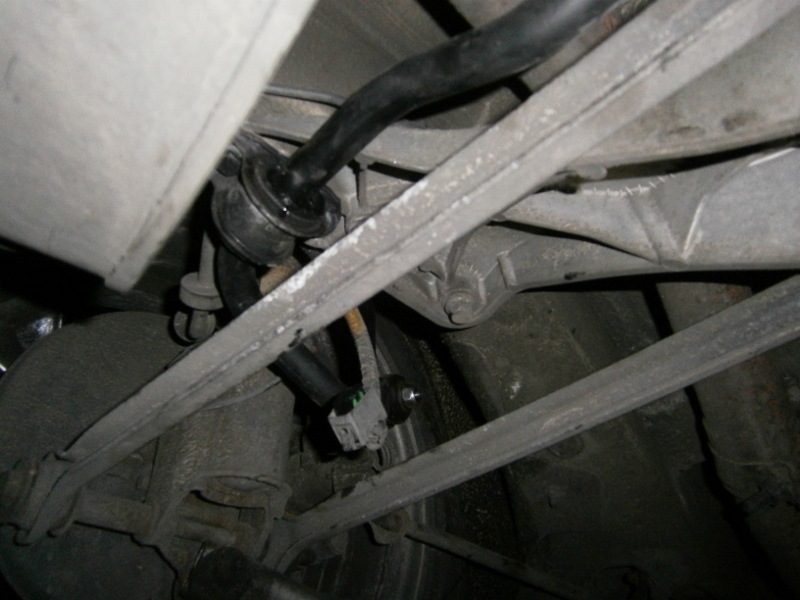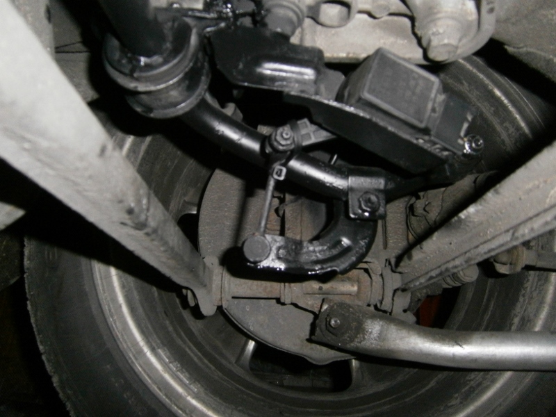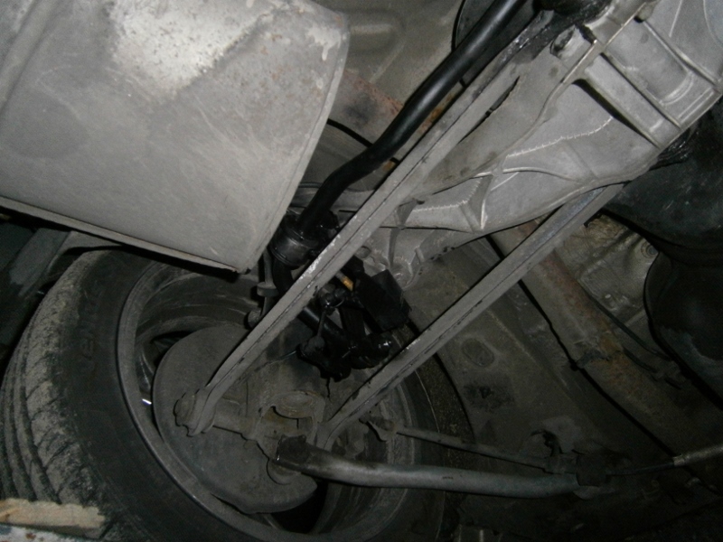 - po skręceniu na sztywno z łącznikami (typowe od 56, plastykowe Febi) okazało się jeszcze, że nowy stabilizator opiera się o wytłoczenie w podłodze na koło zapasowe, jednak nie miałem już sił z nim dalej walczyć i postawiłem auto na kołach a stab ładnie się naprężył i odsunął od tego fragmentu podłogi o dobry cm :),