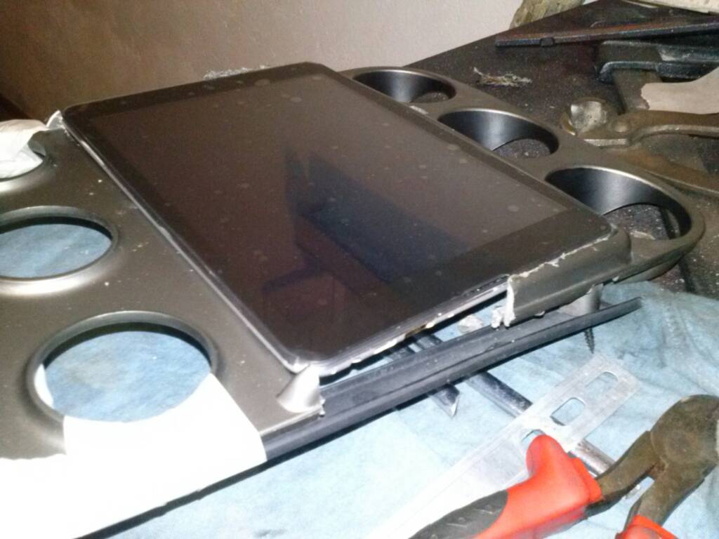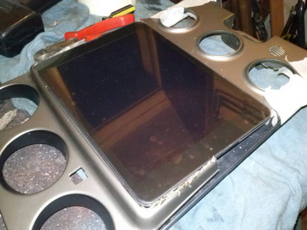 Prowizoryczna przymiarka ciasno ale wszystko wejdzie od strony kierowcy przyciski a po prawej wyjście USB i jack. Kawałek ramki będzie wyciagany z wtyczkami a sam tablet będzie można wyjąć na noc w dwóch ruchach :)