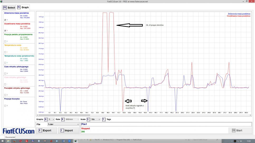 Zrobiłem jeszcze log masy powietrza w FES. I nie wiem, co o tym sądzić. Poza bardzo dużą rozbieżnością przy 4K obrotów (ale trzymałem ją tam tylko chwileczkę, parking osiedlowy, nie chciałem sąsiadów zadymiać, więc może czujnik nie zdążył zareagować) reszta chyba w miarę zgodna....albo i nie? Nie zalogowałem obrotów silnika, ale albo były na idle, albo dawałem w okolice 2-2,5K RPM.