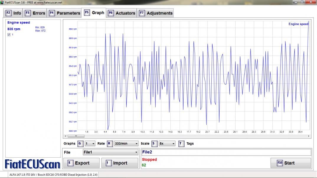 A może jakieś inne pomysły skąd to falowanie - wskazówka obrotomierza wyraźnie tańczy w zakresie plus minus 50 obrotów. Chyba że to ja jestem przewrażliwiony i może to nie jest nic niezwykłego. Wykres: