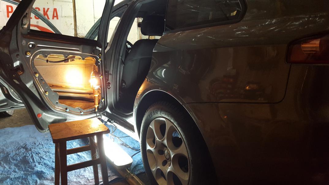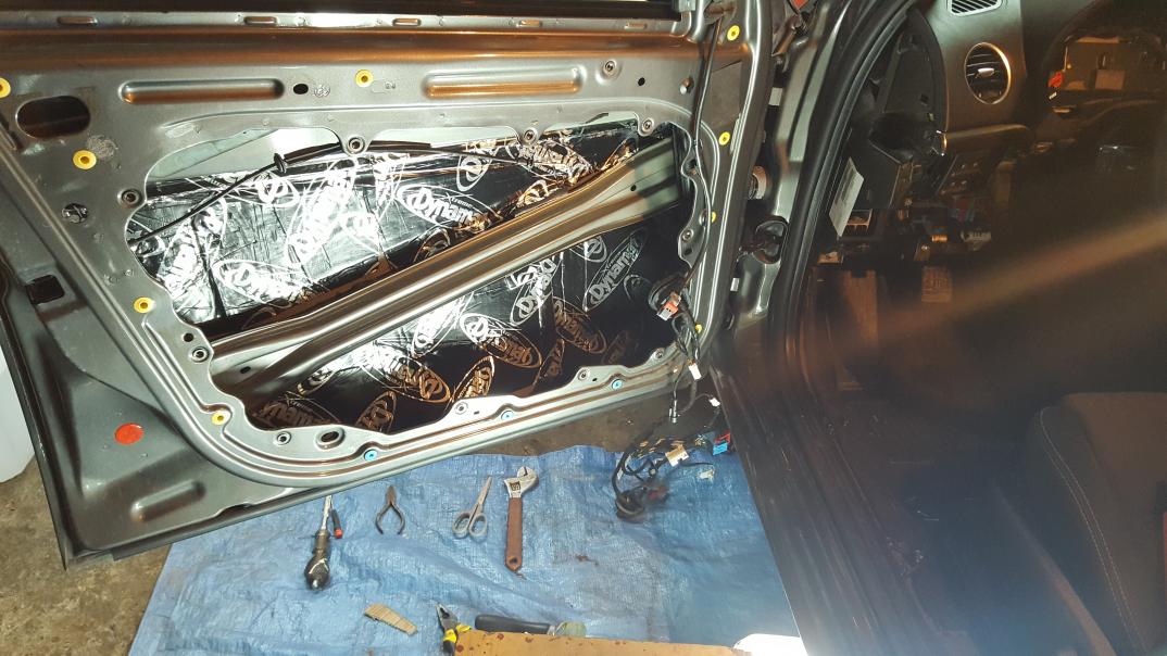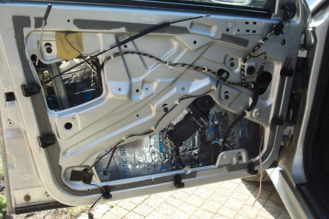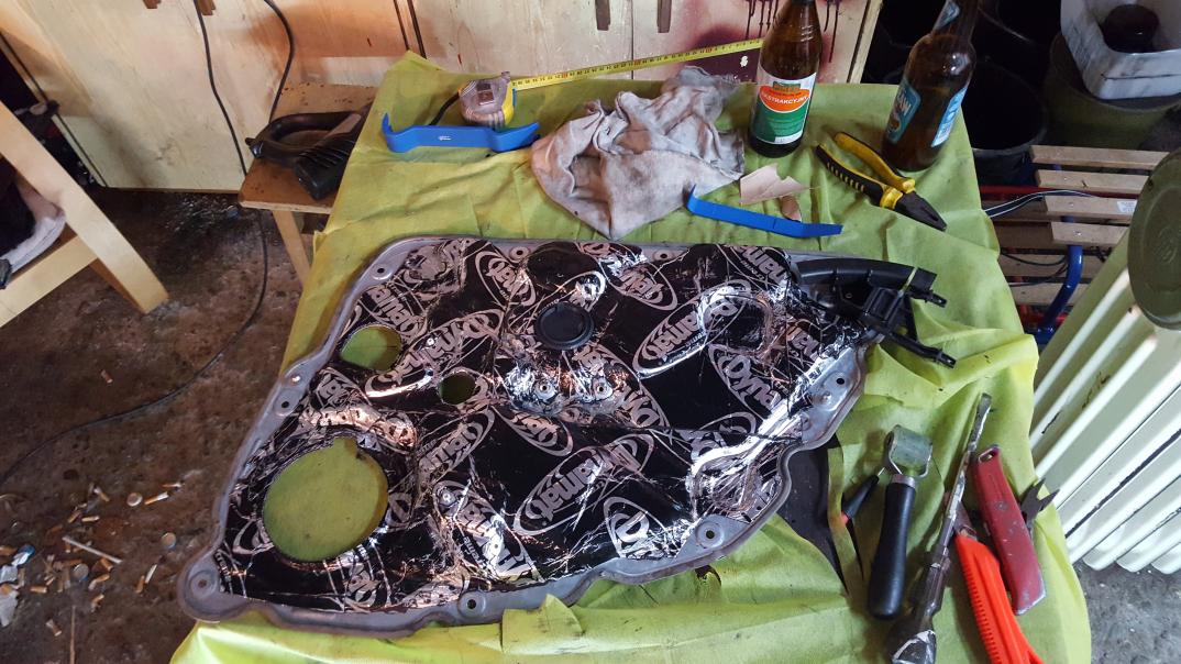 Wytłumienie ładnie Ci poszło ale tyle mat dość mocno obciąży zawiasy drzwi. Mogłeś dać piankę GMS lub tym podobną zamiast tej maty na blachę pod tapicerką. Zawsze to pół kilo mniej. Ja jeszcze wytłumiłem wszelkie widoczne blachy w podłodze (pod siedzeniami przednimi w miejscu ich mocowań, pod tylną kanapą i w okolicy nóg pasażera i kierowcy). Robiłem to przy okazji wymiany foteli, więc miałem lepszy dostęp.