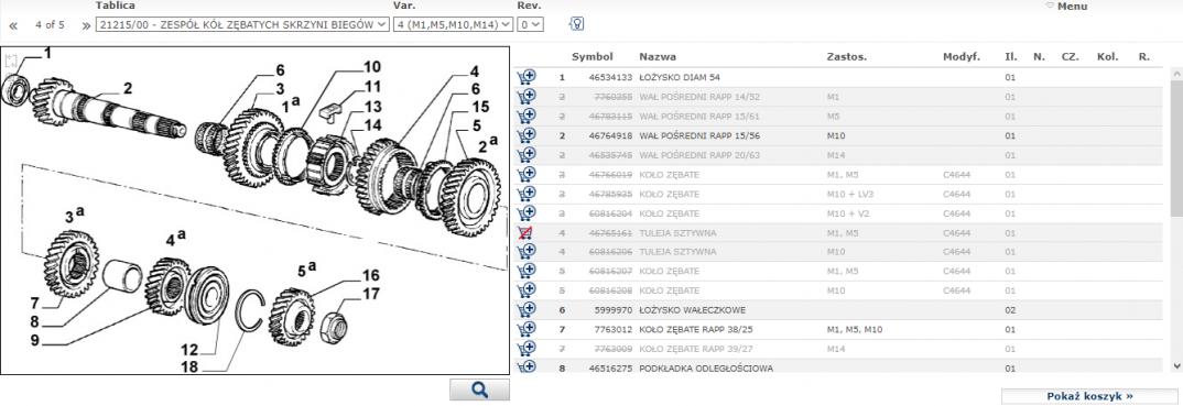 W przypadku częsci nr 2 to masz wyszczególnione do jakiej skrzyni pasuje. Akurat u Ciebie jest (przykładowo) skrzynia typu M10 i resztę masz przekreśloną (czyli nie były te wałki w tej skrzyni zasstosowane). W przypadku nr 3 masz wszystko przekreślone. Czyli albo nie produkują już albo ta część nie była przewidziana jako zamienna w skrzyni Twjego typu.