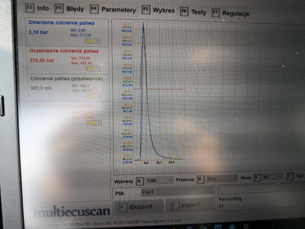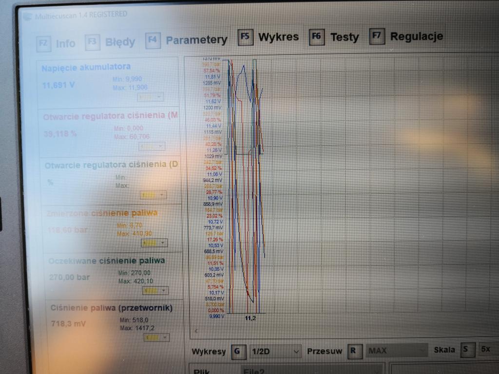 Regulator ciśnienia paliwa wyczyścilem ist choć był czysty i żaden błąd nie wyskakiwal od niego. Przepływa odbiera i nic to nie dało. Ciśnienie jest 270 bar.