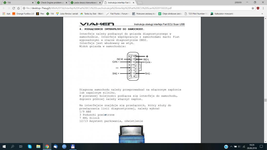 Na poczatku mialem odmowe dostepu do portu ale poprawilem ustawienia i test przechodzi dobrze. Mes 4.2 sciagnalem. Gdzie w 156 znajduje sie ecu? Moze sprawdze czy w ogole z wiazki wychodzi ten fioletowy przewod. Podejrzewam ze jakis cwaniak go po prostu opierdzielil gdzies po drodze. Ten maly wyświetlacz miedzy zegarami tez byl majstrowany. Nie miałem lampki od recznego a myslalem ze po prostu przepalila sie zarowka, wiec to rozebralem. Okazalo sie ze tam sa diody a w moim przypadku miejsce po diodach. Opierdzielone elegancko kombinerkami zeby nie swiecila lampka. Mam uciete chamsko diody od ABS, Airbag i recznego. Mam juz drugi sprawny wyswietlacz i ciaglym światłem na te chwile pali sie tylko lub az ABS. Poduchy gasną po chwili od odpalenia auta... chyba juz nigdy nie kupie uzywanego auta. Masakra
