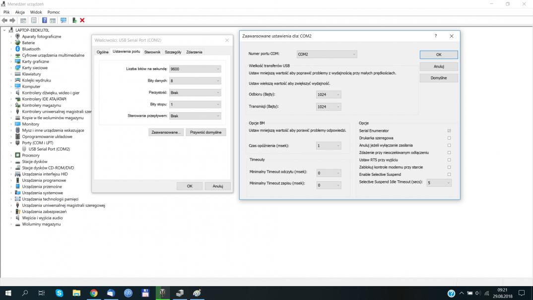 Ja kabel mam tak ustawiony (port com nie wazny - wazne zeby w MES bylo tak samo)