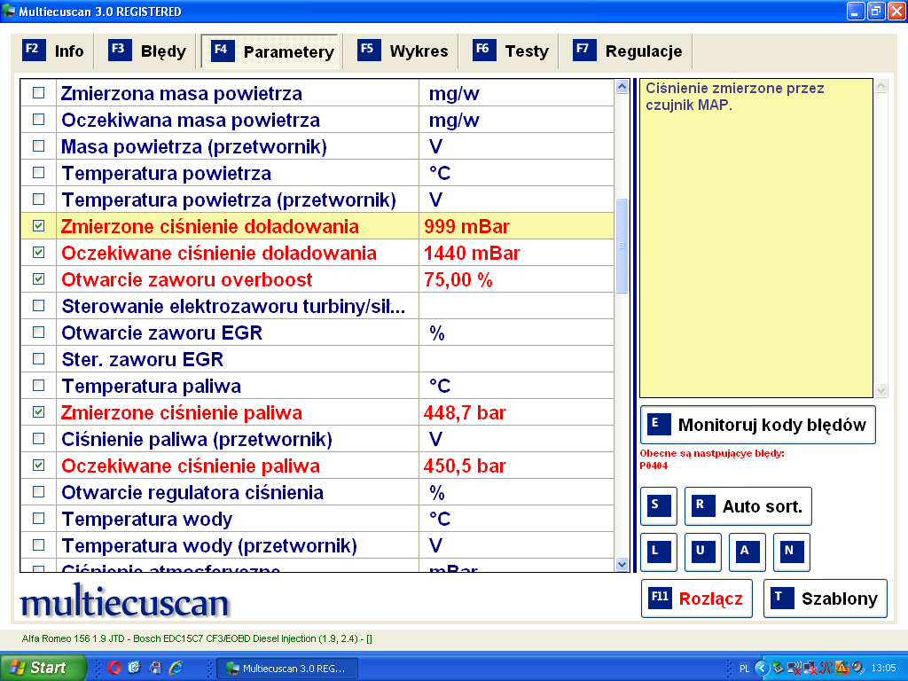 CODE sie zapala i normalnie gasnie Czujniki odpinalem i podpinalem.Na odpietych wyskakuja bledy na MESie.Po pdpieciu skasowaniu bledow wszystko jest ok