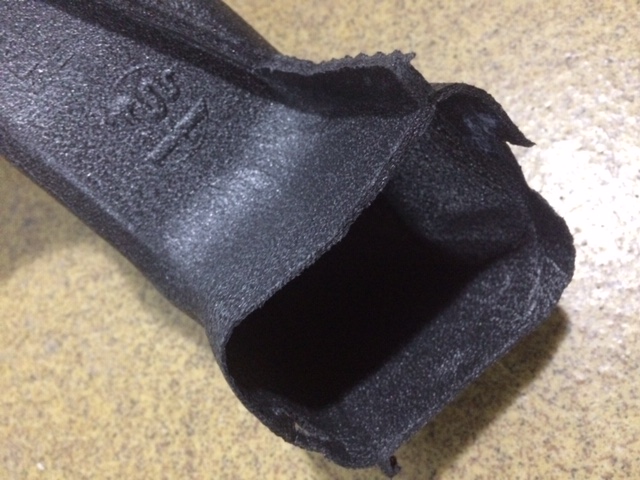 Jak widać po kilkukrotnym wyciąganiu jej (wcześniej przez serwis) mamy naderwane nacięcia pod zaczepy. Nie przeszkadza to jednak w niczym, bo i tak rura z dobrymi nacięciami pod zaczepy trzyma się na „słowo honoru”.