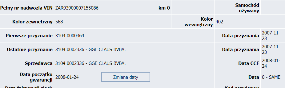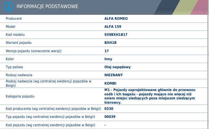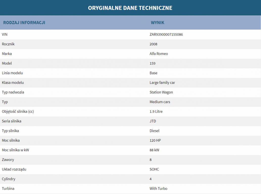 Z raportów które zakupiłem przed zakupem auta z podstawowych danych technicznych mam tylko takie dane jak na zdjęciach