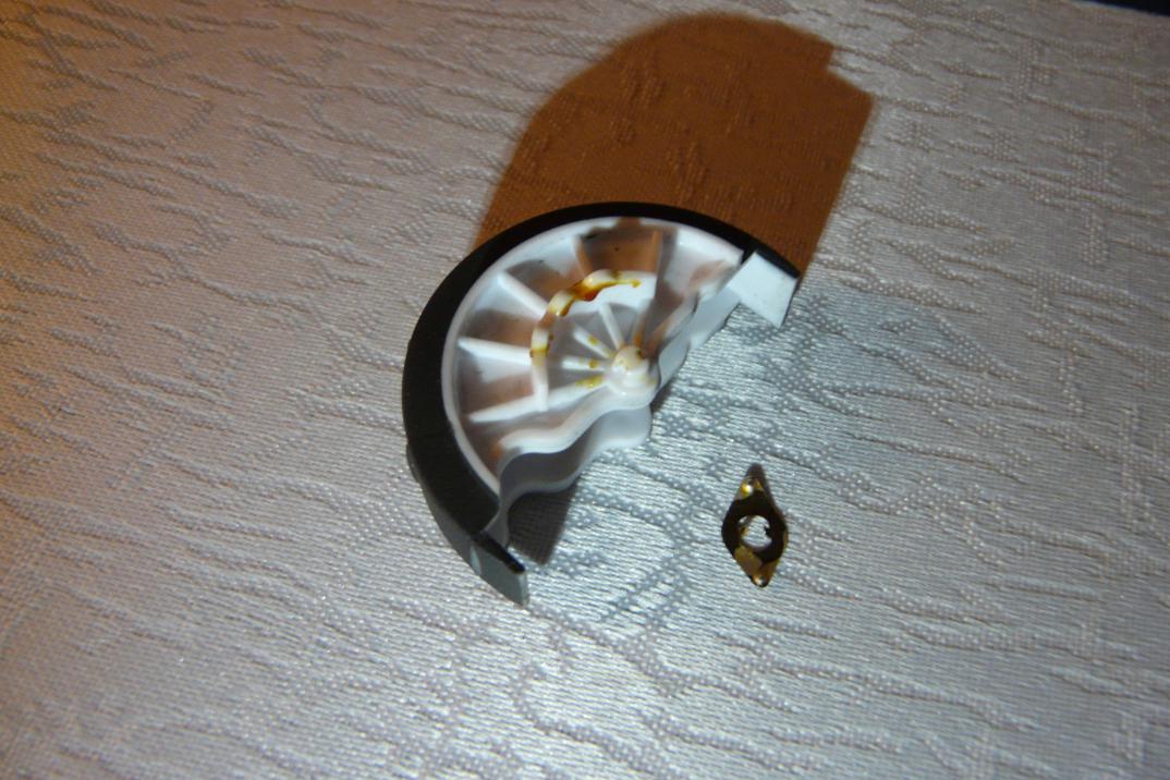 Dla potomnych zdjęcia poniżej. Brakowało mi tej małej blaszki, która bardzo chętnie wypada w momencie wyjmowania pokrętła.