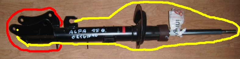 2) Czy amortyzator (kolor zółty) wkłada sie w element zaznaczony na kolorem czerwony?