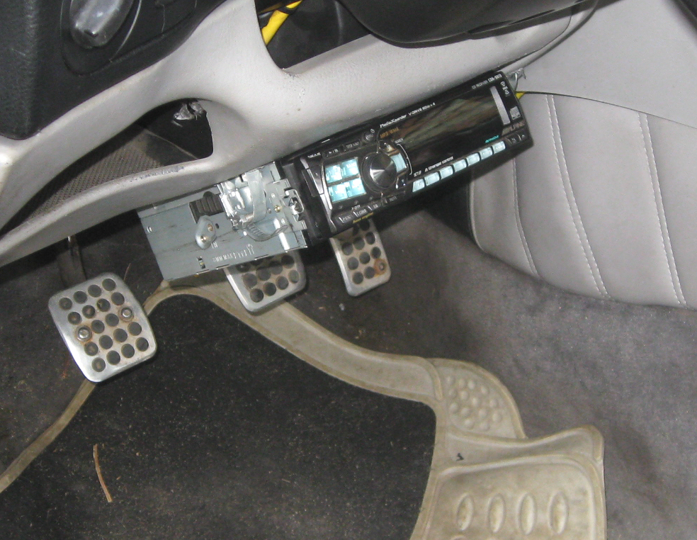 Radio jest pod kierownicą, przytwierdzone do klapy od bezpieczników.