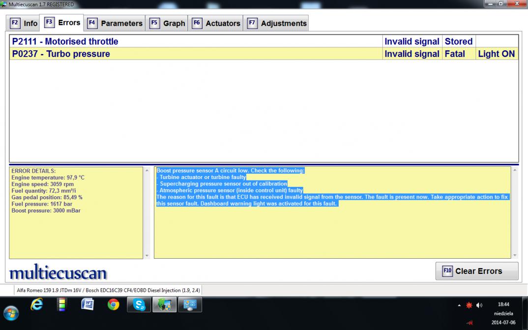 z takowym błędem byłem u Pana TomkaKrK zaproponował mi wymianę czujnika turbo (ten co się montuje na kolektorze dolotowym od góry). Po wymianie czujnika i ponownym teście 180 mam takie same błędy. Czujnik kupiłem nowy bosh jednak działa dość dziwnie otóż po odpaleniu auta idealnie wskazuje 0 natomiast po przejechaniu kilku kilometrów oraz rozgrzaniu auta przynajmniej do 70 stopni wskazówka turbo już nie schodzi do zera tylko lekko jest odchylona nie mylić z wypalaniem DPF bo przy tej opcji ewidentnie wskazówka jest odchylona i prawie sięga pierwszej kreski. Auto po zgaszeniu i odpaleniu (silnik rozgrzany) wskazówka pokazuje 0 natomiast przy lekkim przygazowaniu wskazówka już jest odchylona i tak pozostaje. Byłem w sklepie tam gdzie kupiłem autosklep24.pl otrzymałem odpowiedź że mogę reklamować jednak muszę mieć jakiś dowód chyba najlepiej mechanika na piśmie aby z buta producent nie odrzucił. Nie mniej jednak po wymianie tego czujnika nic się nie zmieniło. Turbo troszkę jest przepocone i nierozgrzane podgwizduje, po dłuższej jeździe kilka kropel oleju potrafi zostawić (najczęściej na podjeździe u Teścia). Poniżej zamieszczam screeny z FES