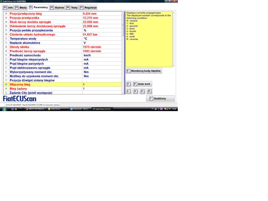 Z tego co widzę z zrzutów z ekranów FES to gdy masz włączony bieg 1 lub 2 to obroty tarczy sprzęgła i obroty silnika zrównują się (rozumiem, że przy próbie ruszania).