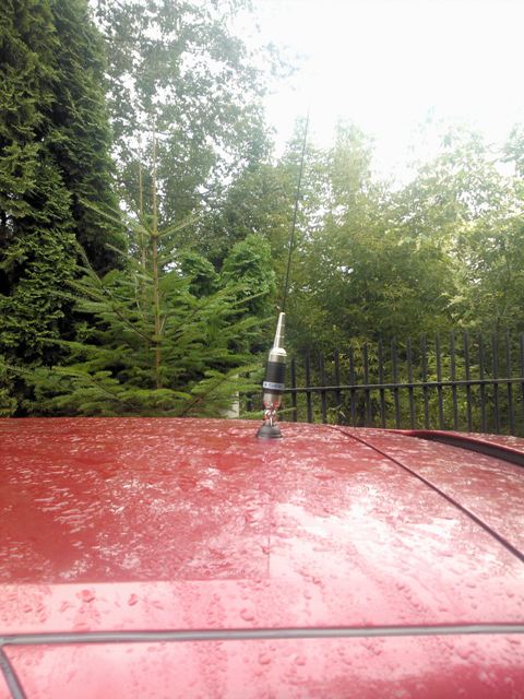 przewód puściłem nad podsufitką i lewym przednim słupkiem na dół, a antena to Sirio Super Carbonium 27 (140cm), antena fm oryginalnie jest wbudowana w tylna klapę, więc po co zakładać antenę typu twin