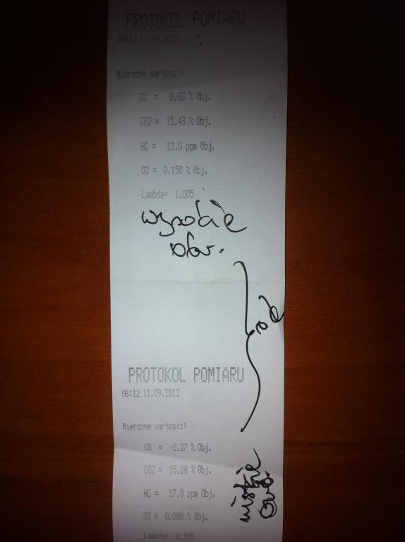 Załączam papierki jakie otrzymałem od mechanika i z pomiaru spalin.
