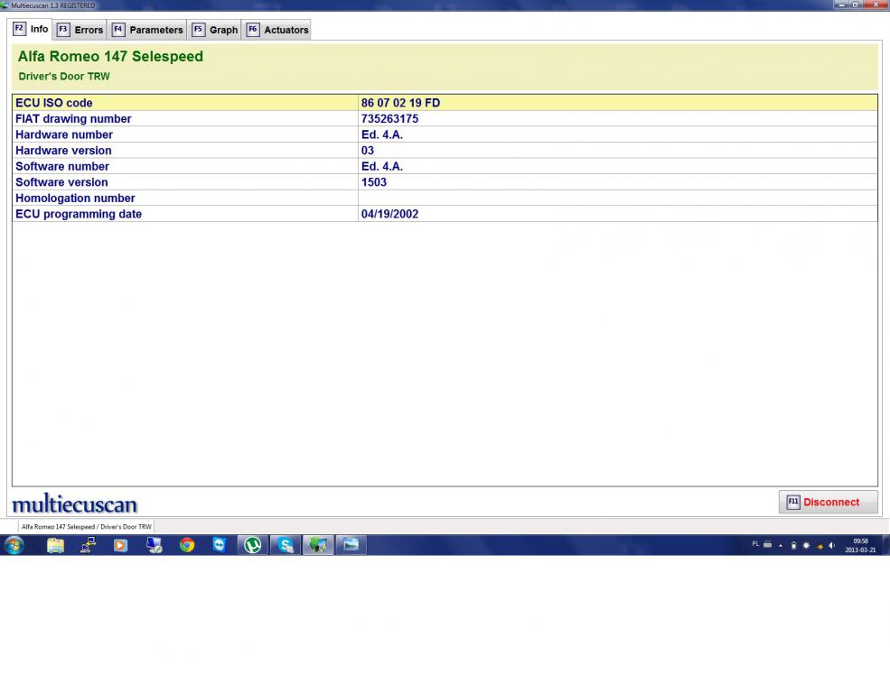 - alfaobd dość dobrze się łączy z 147 TS.