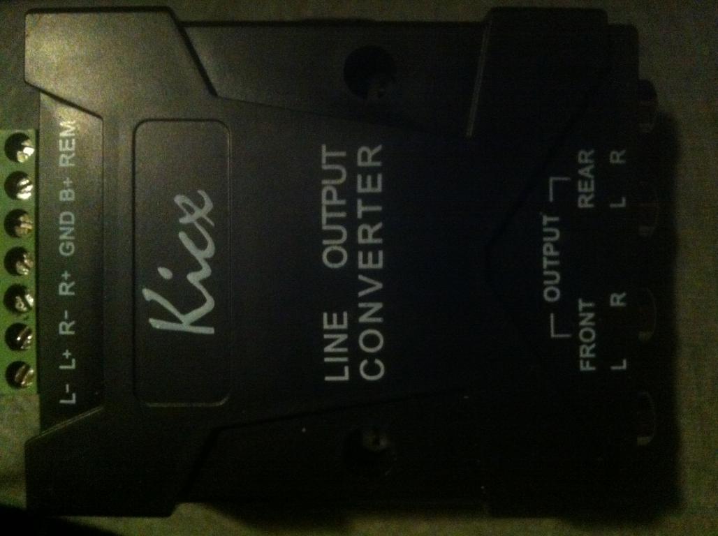 1. Konwerter to Kicx HL 370, podciągasz do niego kable z radia te co by szły do glośników tak jak widać na urządzeniu Lewy +, - ; Prawy +, - ; gnd-uziemienie.. Rem to trzeba podpiąć pod kabel który odpowiada za włączenie radia kiedy je włączysz guzikiem a B+ niestety niewiem.. (może ktoś jeszcze się wypowie)