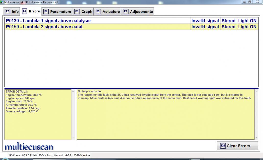 ECU miał zapisane 2 błędy: P0130 i P0150. Pojawiają się już od dawna i co ciekawe nie powodują zapalenia się kontrolki silnika, ani nieprawidłowości w jego pracy.