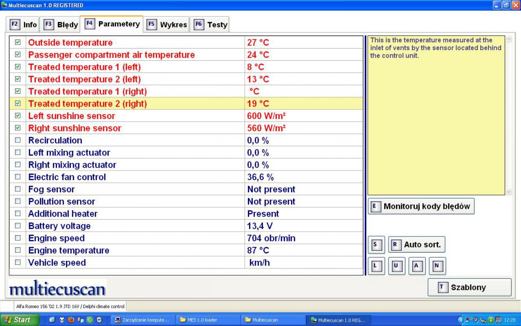 Na moim panelu wszystko działa dobrze. Tak było po chwili jak przestawiłem z LOW na 16,5 i 19,5 od strony pasażera. Odczyt temp. wody też ok