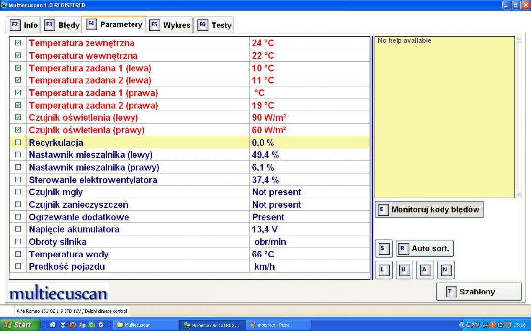 w końcu udało mi sie połączyć. Błędów żadnych nie ma. Jednak w parametrach nie ma odczytu jednej temp.