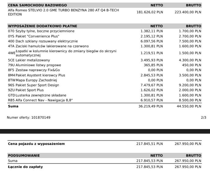 Każdy grosz ważny, ale w najmie bardziej liczyła się wysokość raty miesięcznej niż kwota katalogowa i dlatego jest/będzie u mnie Stelvio, a nie coś innego. Mimo że zakup Alfy powinien być mniej zdroworozsądkowy - to przy cenie prawie 4 tys /mc za Puga 3008, okazał się być decyzją jak najbardziej racjonalną i przemyślaną. A cudowny wygląd, mocny silnik, napęd na 4 i świetne prowadzenie traktuje jako skutki uboczne :D