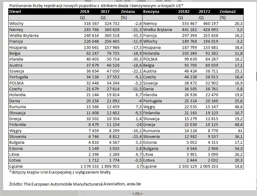 Źródło: The European Automobile Manufacturers’ Association, acea.be