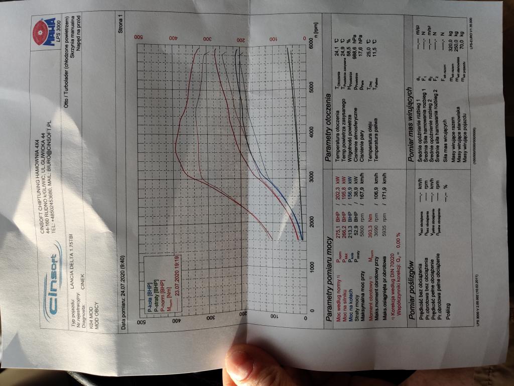 No to ja muszę jeszcze raz jechać na pomiar, bo po programie około 2 tygodnie później okazało się że miałem nieszczelność między przepływomierzem a turbo, po naprawie pisałem jeszcze do Cinka bo turbo więcej pompuje teraz Piki dochodzą do 2700 mbar, Cinek powiedział że stałego mam 1.65 ale w piku może być więcej do tego wymieniłem zawor N75 stary już się przycierał. Teraz przy 1700 obrótow turbosprężarka ładuje 1.2 bara, wcześniej tylko 0.7 bar. Może dlatego taki wynik wyszedł