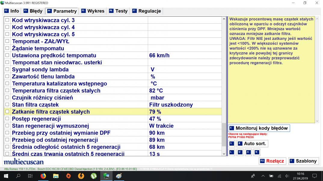 Fajnie by bylo gdybym mogl sobie jakos programowo zobaczyc co ile na oko sie wypala dpf. bo tak wedlug moich obliczen to jest co ok 800km ~~