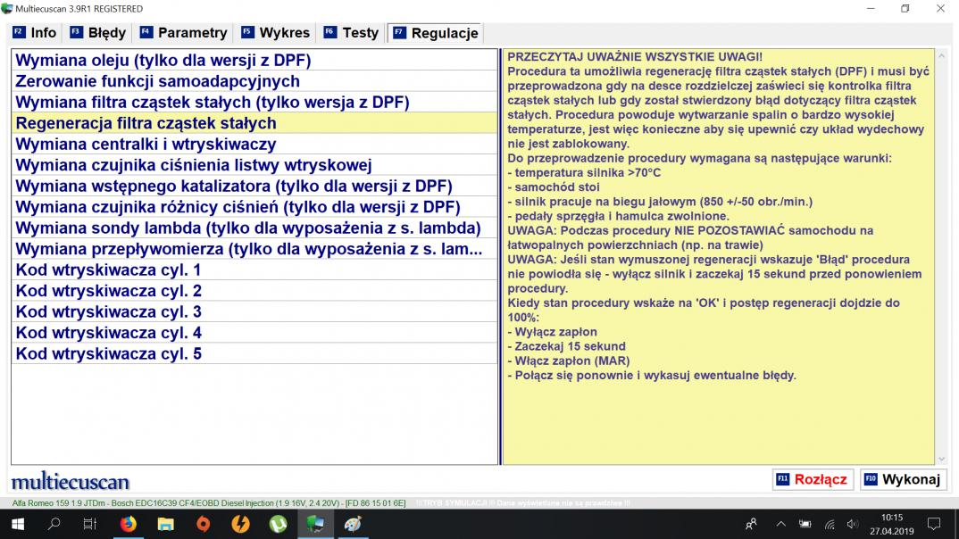 Niestety to samo co wcześniej... komunikat że za długi czas połączenia... nie mogę wejść w dpf, może z moim interfejsem:/
