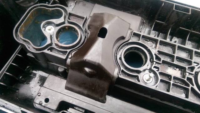 Dziś czyściłem pokrywę zaworów myjką pod niskim ciśnieniem. Polecam. Z zewnątrz króciec odmy wyglądał na czysty, ale w środku było sporo białego gluta, co z pewnością blokowało odprowadzanie par oleju. Dobre miejsce na gromadzenie się syfu.