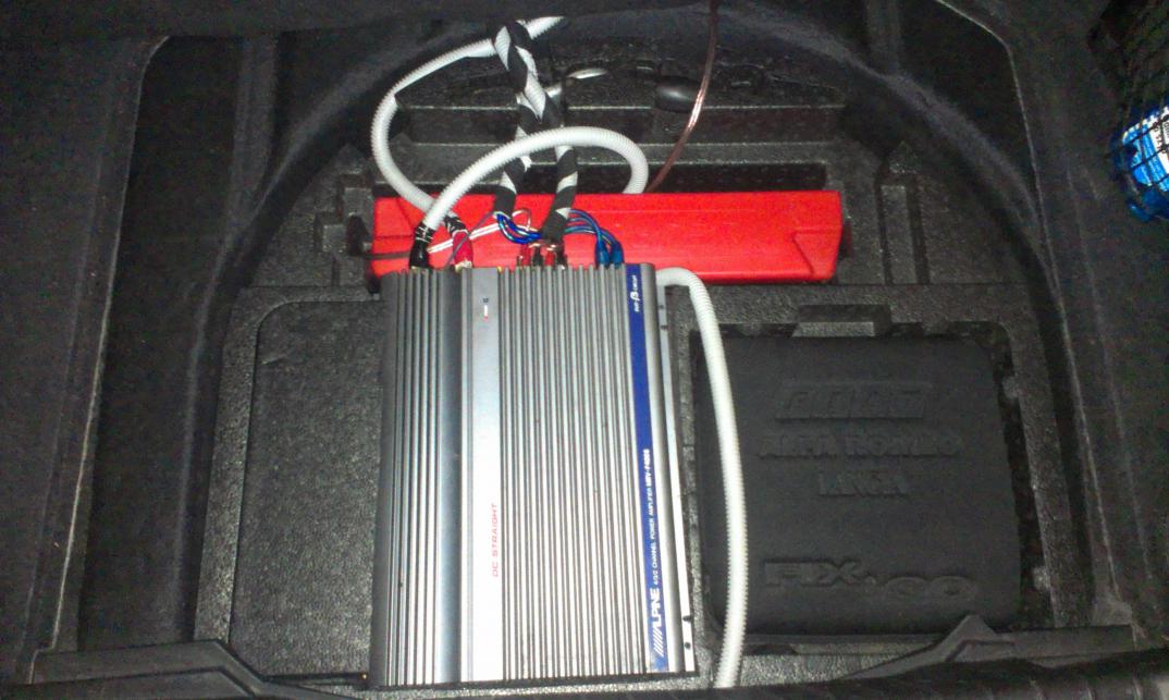 Ja bym jednak wsadził wzmacniacz (co prawda dodatkowe 500- 700 zyli, ale warto, a za jakiś czas skrzynka) miejsce jest w bagażniku, ja wsadziłem tak (nie dokończone dlatego kabli kupa dla tych co zaraz będą druta szukać), po tym jak jedna firma z Centralnej polski mi zaśpiewała 800+ za zabudowę boku w stylu BOSS i ładne wkomponowanie wzmacniacza z drugiej strony, chodź najbardziej mnie wnerwiła gadka o 3 dniowym zabraniu auta