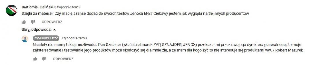 Apropo Jenox'a i testów porównawczych na youtube, jakie robił wcześniej Mr.Akumulator (teraz już nie zaprzestał z tego co widzę):