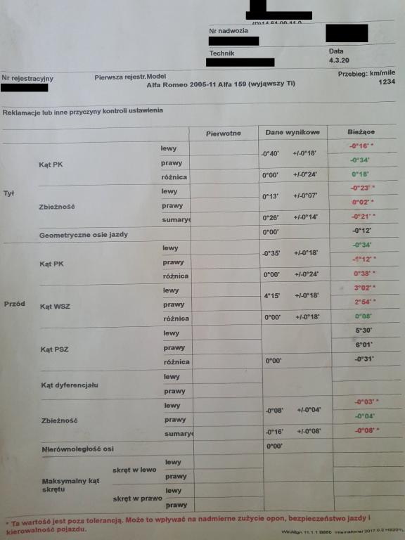 Ogólnie nie było źle, delikatna poprawa zbieżności przód-tył i kątów z tyłu.