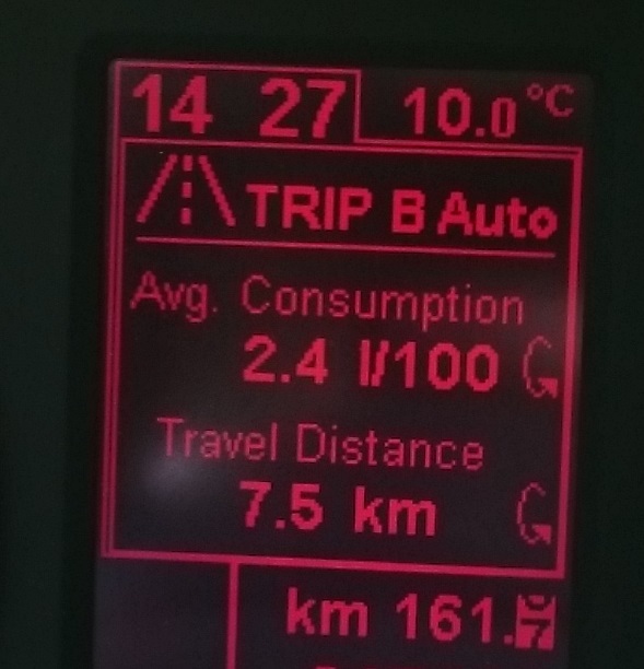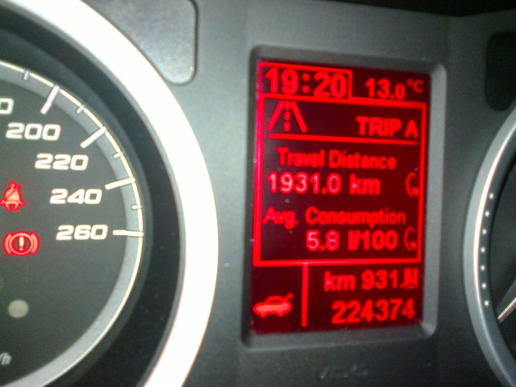 Spalanie na komputerze 6,5l, w rzeczywistości z tankowań wyszło 6,7l, co uważam za rewelacyjny wynik biorąc pod uwagę prędkości podróżne plus komplet na pokładzie.