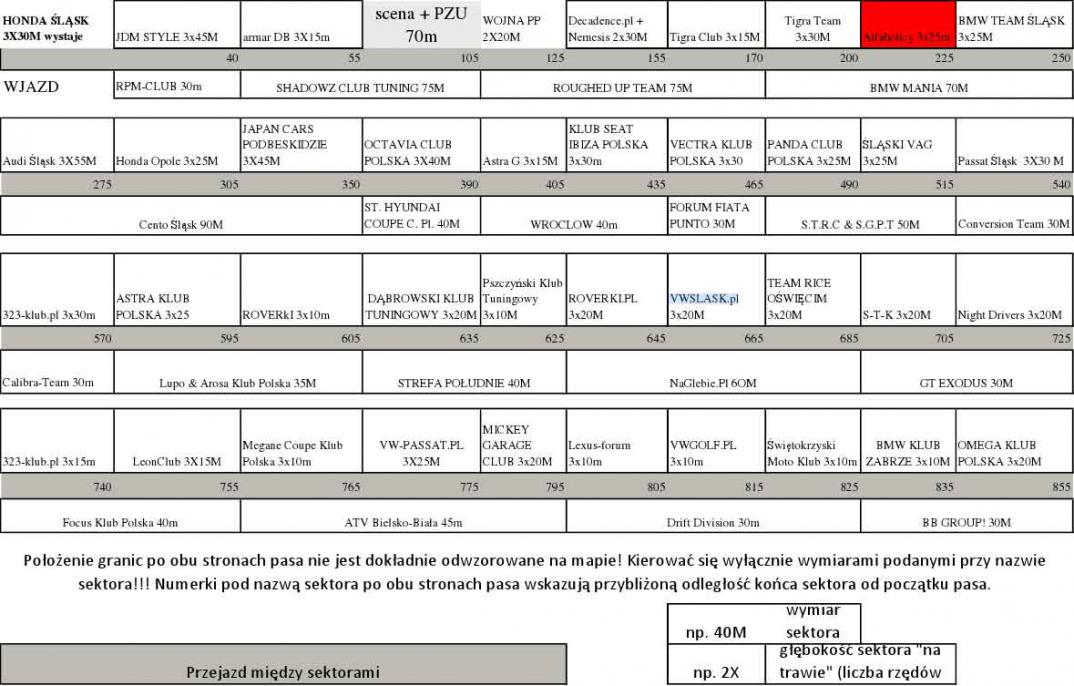 Przesyłam w załączniku mapkę sektorów klubów. Z racji długości pasa, został od rozdzielony na kilka części, jak zawsze zresztą.