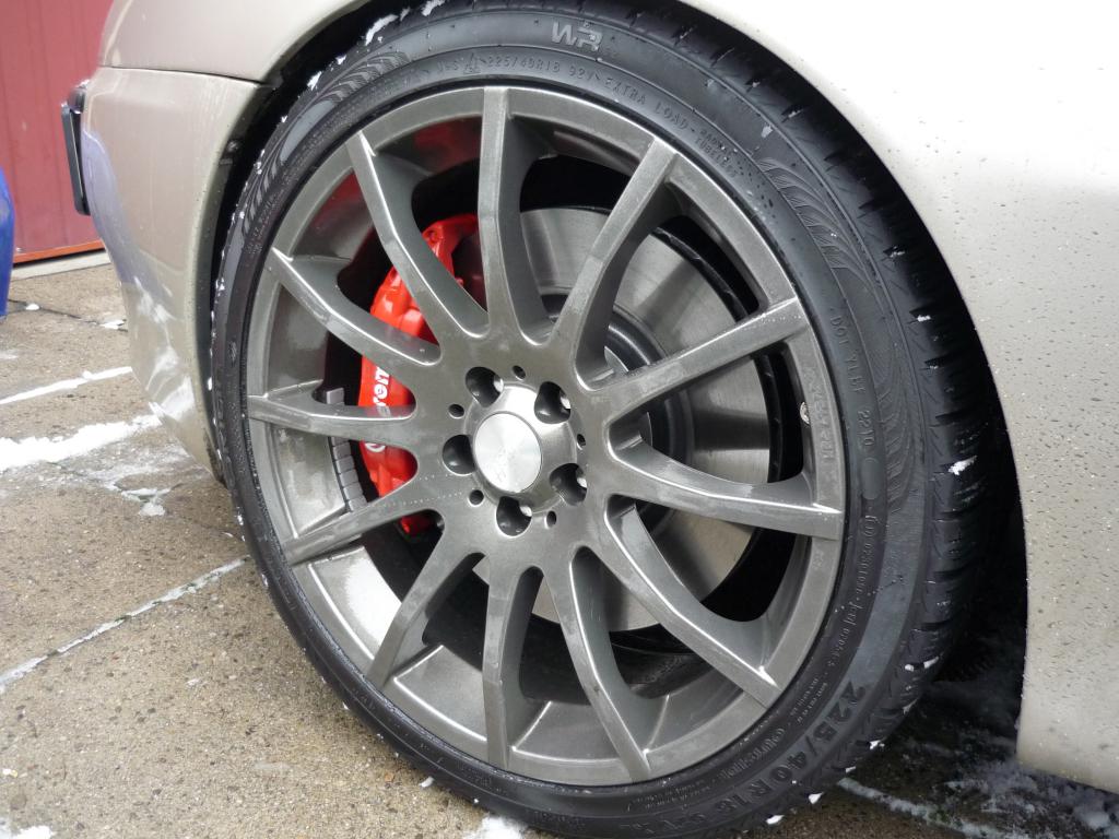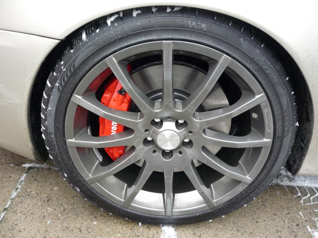 Zima.. zima.. to jako, że brembo założone to nie obeszło się bez większego koła.. wsadzone aluetty typ 10, 8j, ET35 i opony 225/40/18.