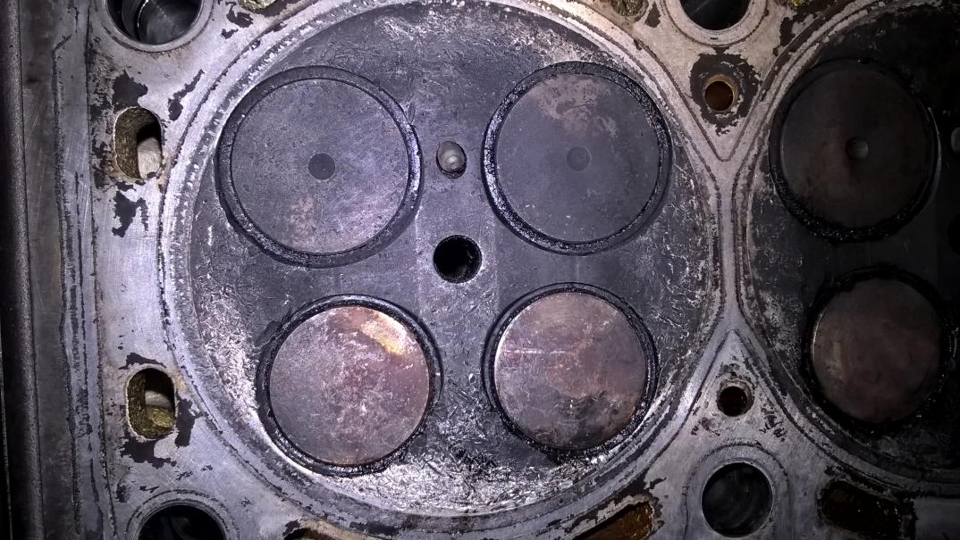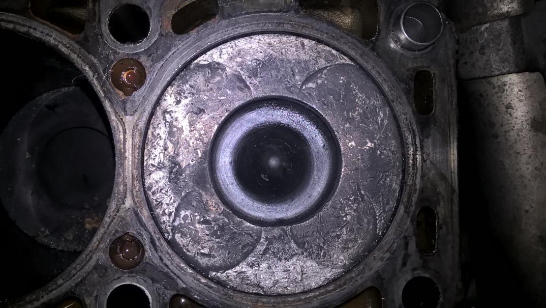 Dzisiaj w końcu udało mi się znaleźć trochę czasu i pomimo opornej śruby zdjąć wreszcie głowicę. Widok nie za ciekawy, szczególnie w przypadku pierwszego tłoka - zdjęcia poniżej:
