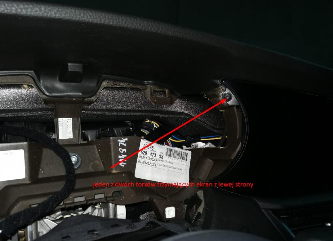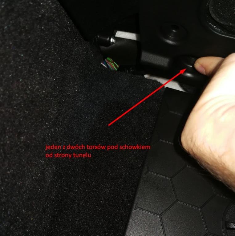 W schowku mamy 3 torxy, które odkręcamy. Pod schowkiem natomiast, od przestrzeni na miejsca dla pasażerów mamy dwa dodatkowe torxy.