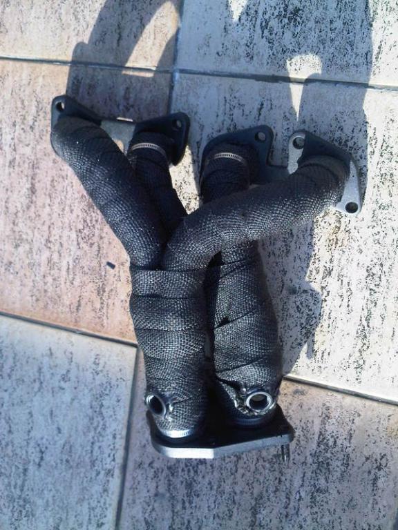 Jako pierwszy krok zakupiłem kolektor od 1.8 144konie więc 4-2-1 bez katów.. Jak wiedzą użytkownicy tego silnika rozkłada się on na dwie części.. tą część gdzie mamy 4 rurki troszkę musiałem poprawić, konkretnie dodać gniazda na sondy lambda.. Potem użyłem zestawu do izolacji firmy ThermoTec.. 1 krok malowanie farbą żaroodporną, 2 krok owijanie taśmą termoizolacyjną która ma w sobie włókno szklane, 3 krok ponowne malowanie już z taśmą.. W zestawie była taśma, farba pod kolor taśmy i opaski zaciskowe.. i instrukcja rzecz jasna która mówiła o takiej kolejności jak zrobiłem..