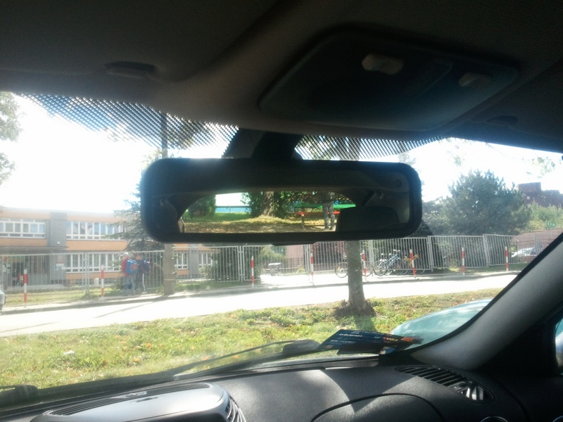 Jadąc w nocy gdy pojazd z tyłu rzuci wiązkę światła na Twój "tyłek" to ma się sciemic lustereczko.