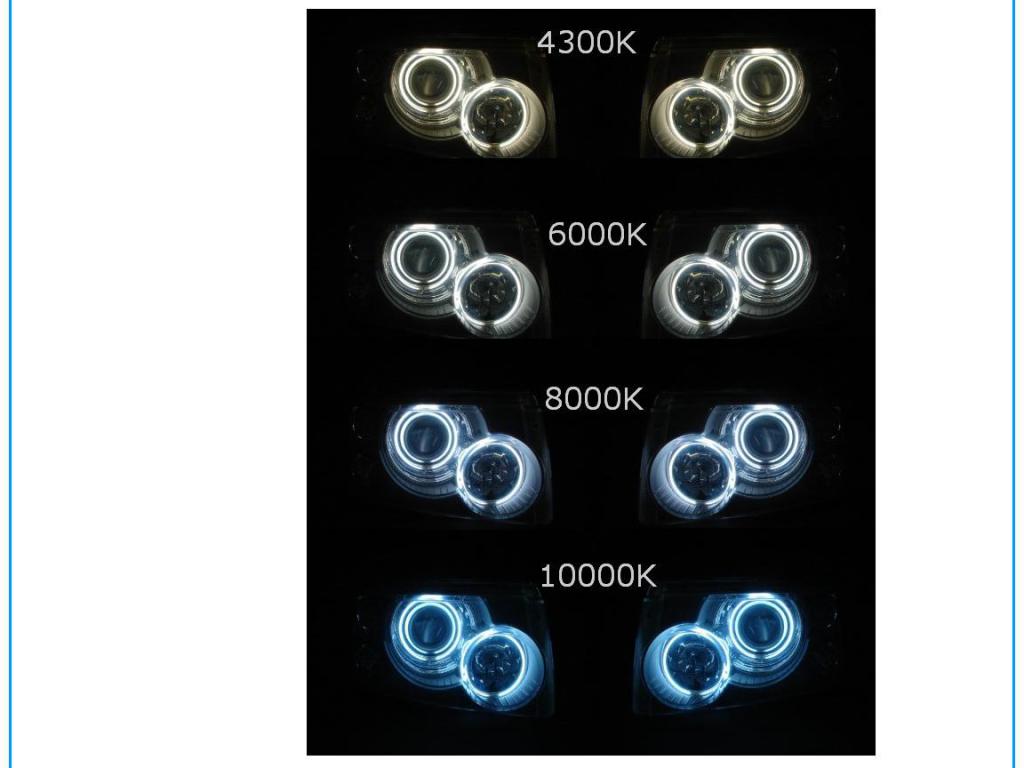 4300 to jest bardziej białe, 6000 to biało-niebieskie. Osobiście śmigam na 6000K, miałem parę kontroli, przeglądów i wszystko przechodziło, nawet mimo braku spryskiwaczy i samopoziomowania. Najwięcej hidów sprzedaję właśnie na 6000, trochę mniej na 4300K. Ostatnio też kolega do przerobionych przeze mnie lamp do Alfy GT kupił i włożył 8000K- czekam na fotki ;)