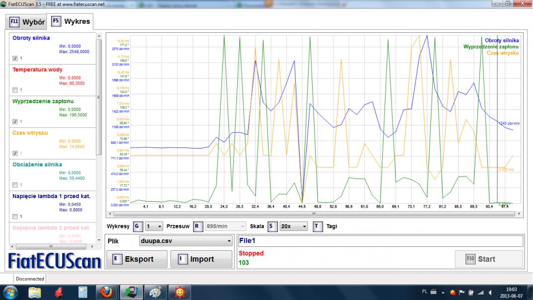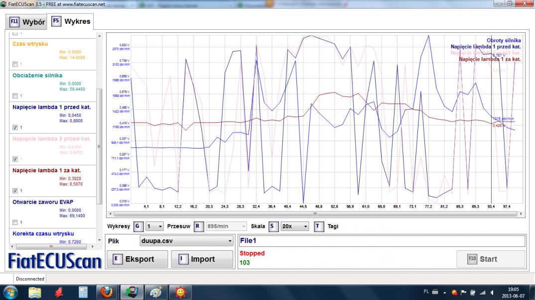 Zrobiłem kilka wykresów na rozgrzanym silniku:
